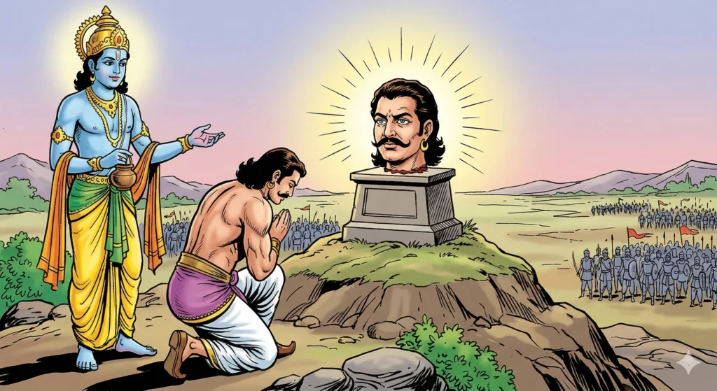 जब भगवान श्रीकृष्ण ने बर्बरीक की शक्ति देखी, तो उन्होंने उनसे दान मांगने का निर्णय लिया।