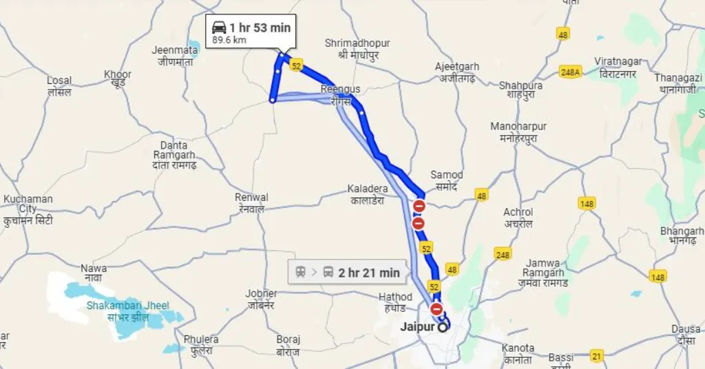 Google Maps के हिसाब से Palsana to Khatu Shyam Distance